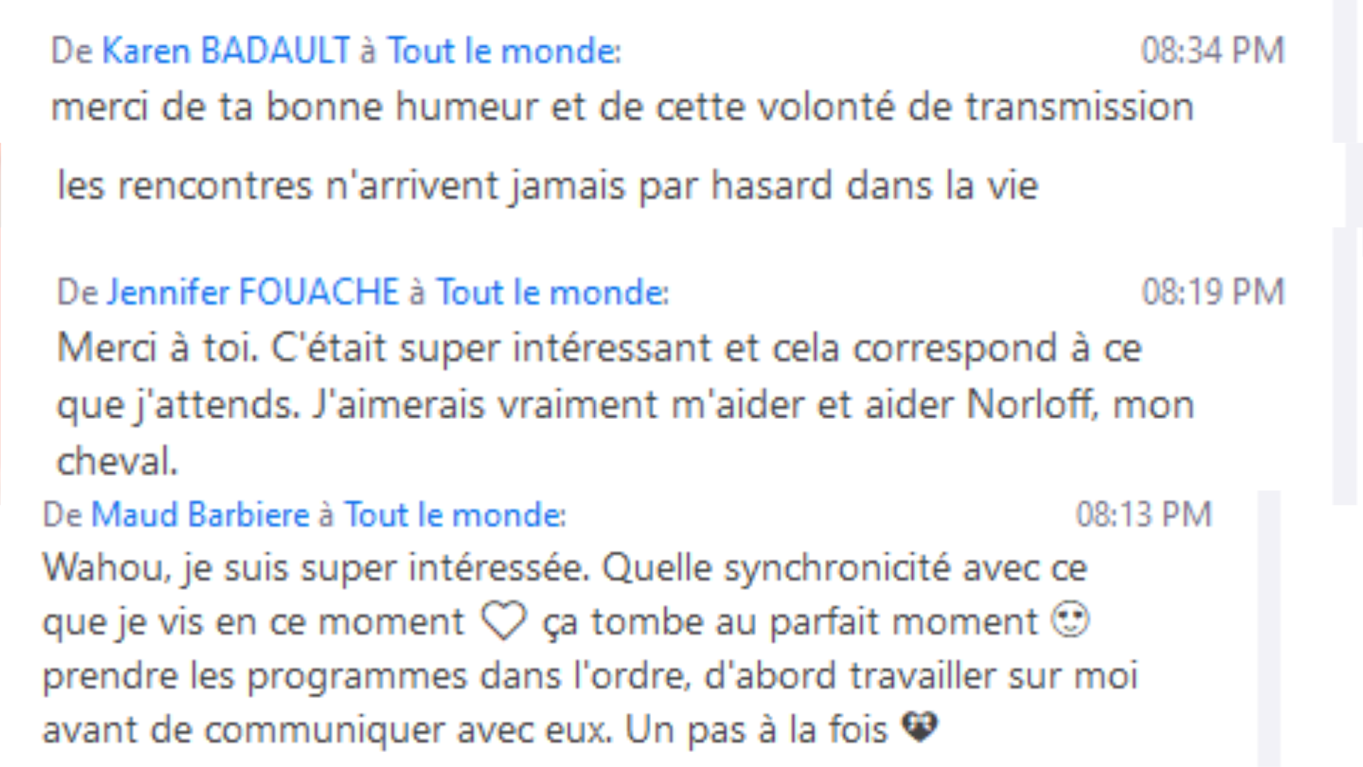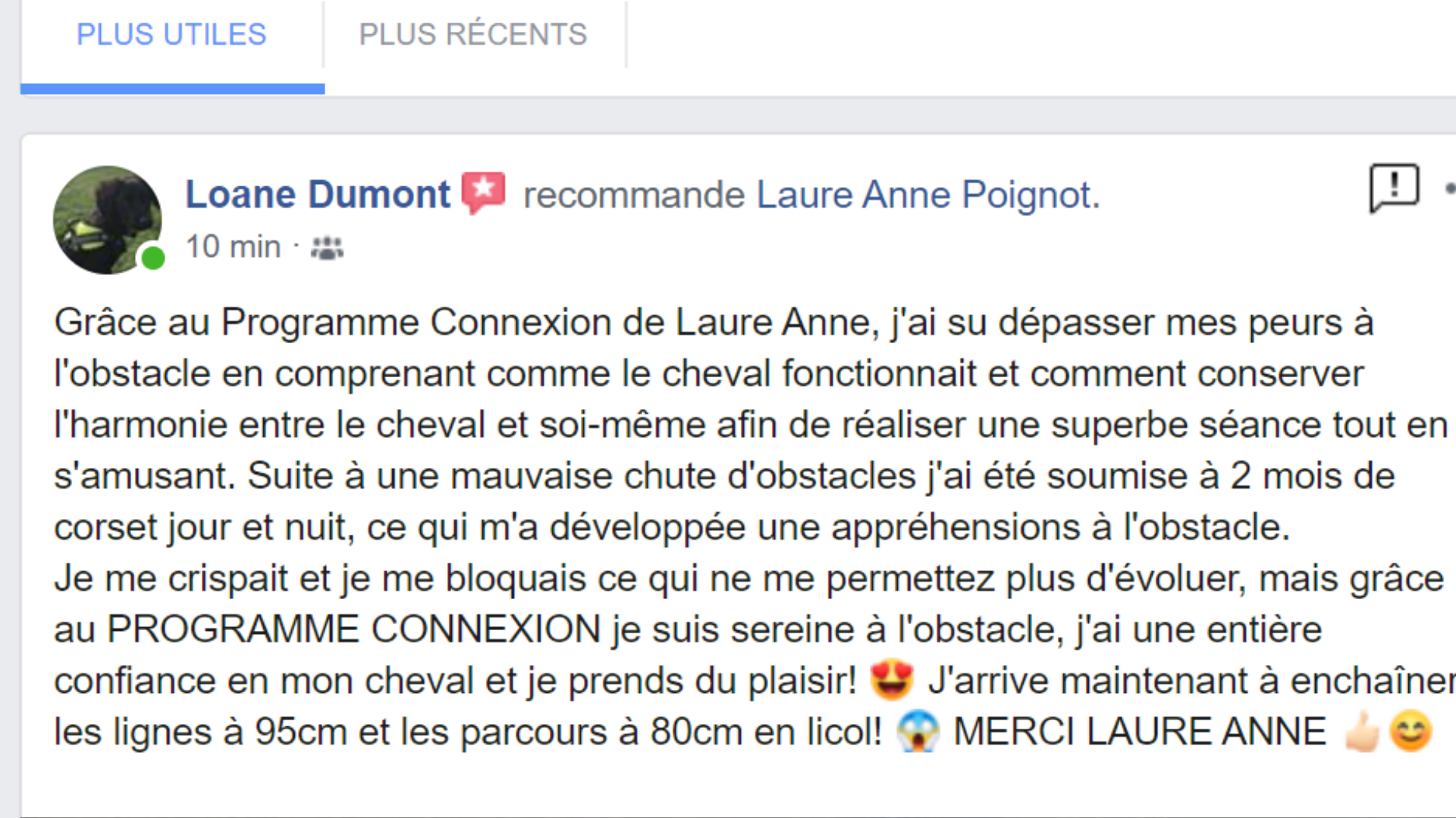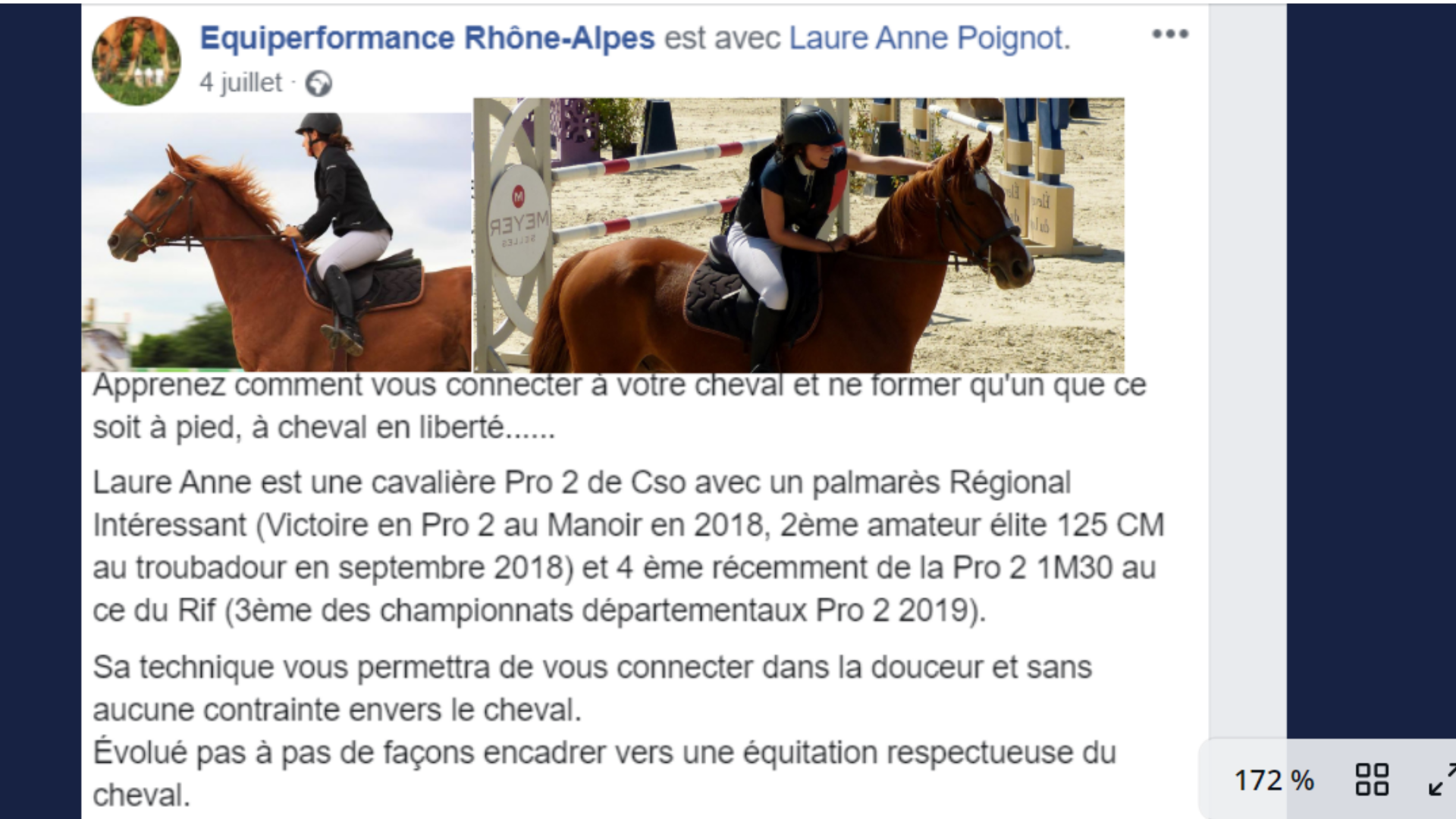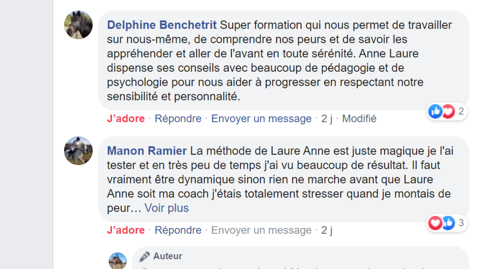Pour poser toutes tes questions, être relié directement à Laure-Anne : "monitrice d'équitation, praticienne en hypnose, praticienne en communication animale, cavalière professionnelle en CSO" assurant votre progression.