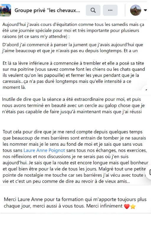 -"ça n'a pas de prix" un accès tous les jours à Laure-Anne, professionnelle du cheval et du bien-être humain